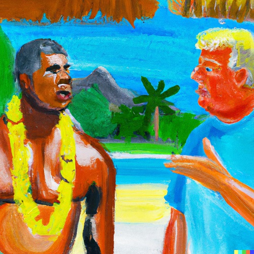 Donald Trump: “Well, well, if it isn’t Barack Obama. What a surprise to see you here at this Hawaiian resort. I figured you’d be off somewhere lecturing about socialism or apologizing to foreign countries.”